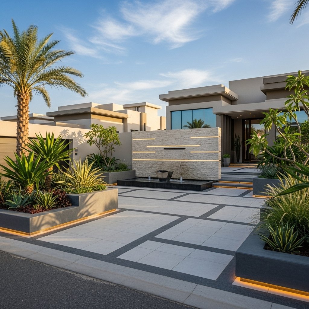 Modern Driveway Landscaping in Al Khoud Heights