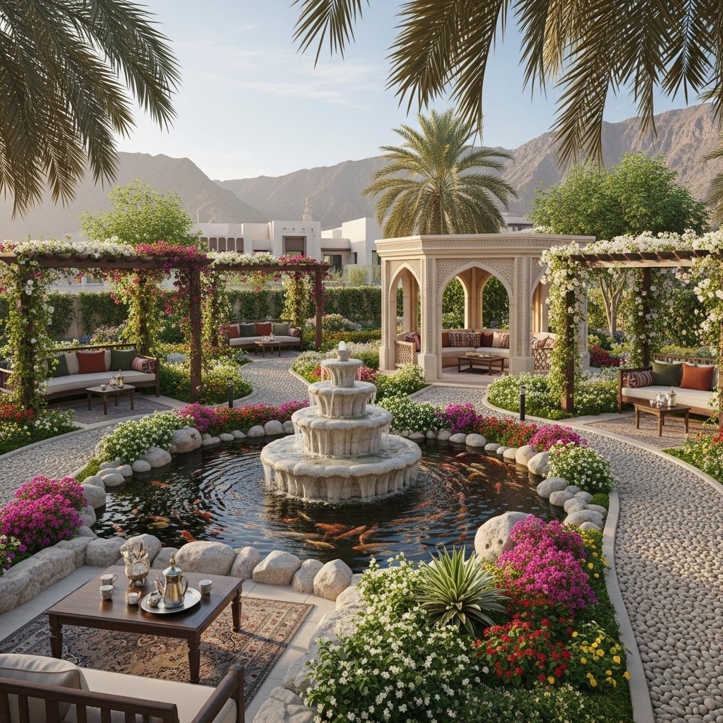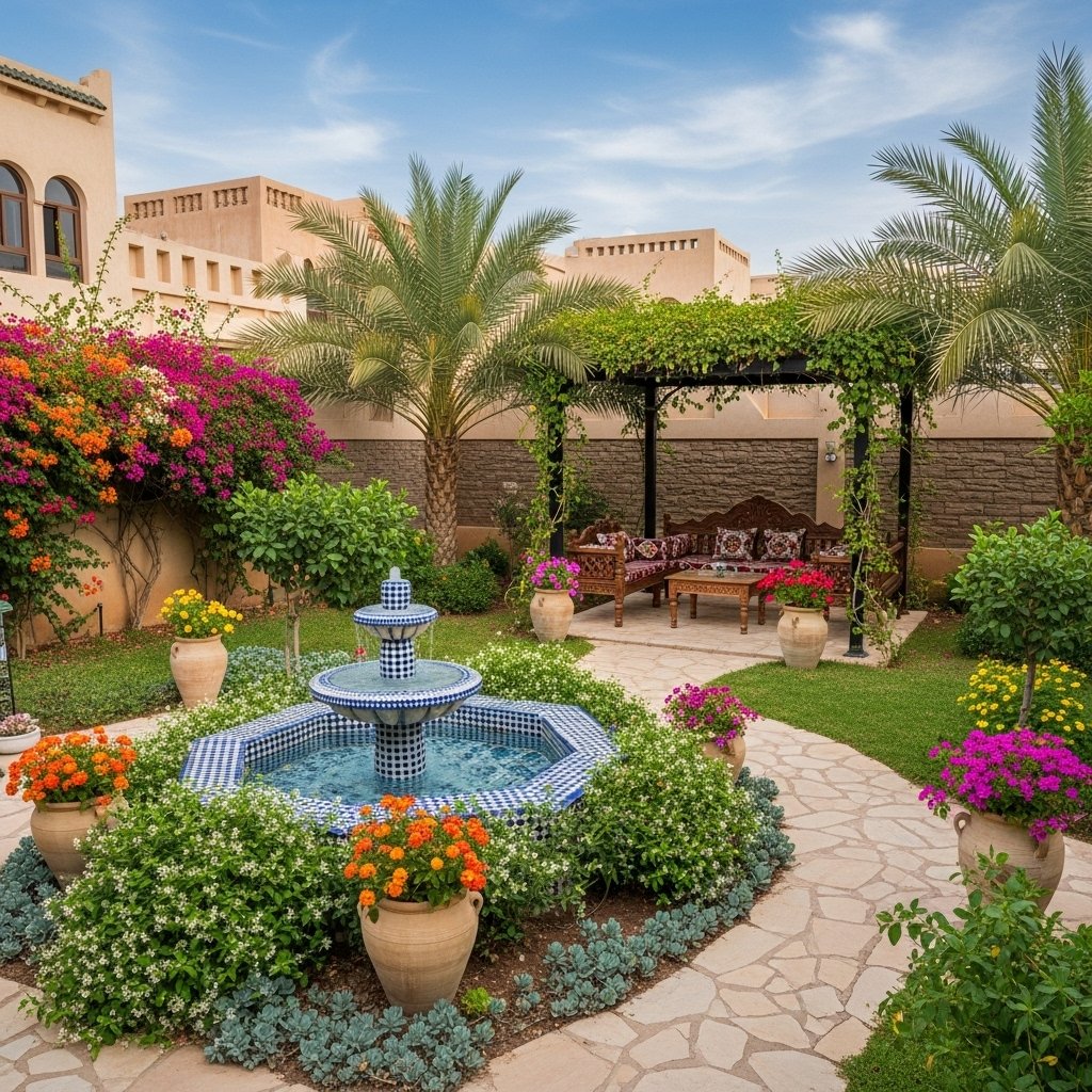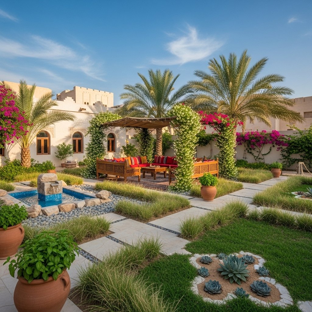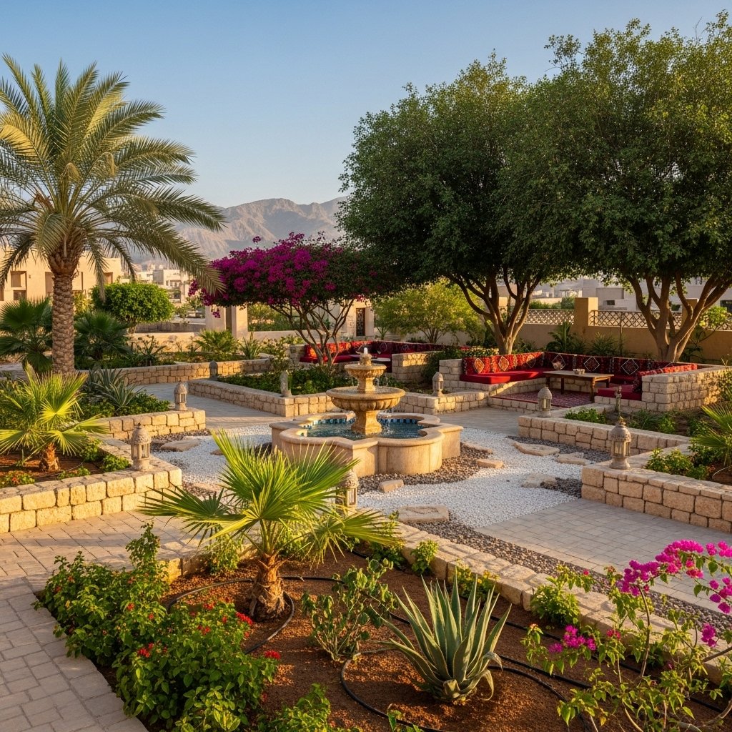 Traditional Home Garden Renovation in Muttrah – Low-maintenance garden makeover using native plants suitable for coastal climate.