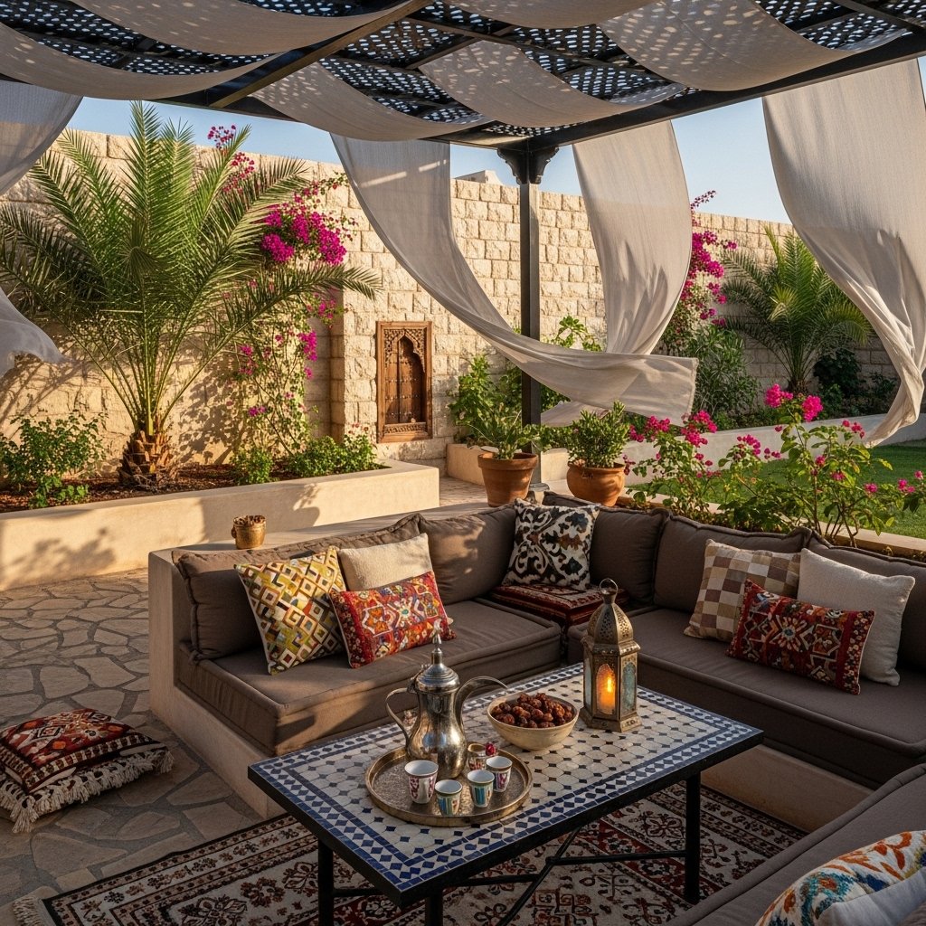 In Seeb Al Mawaleh, we built a cozy outdoor seating area surrounded by decorative plants, perfect for evening gatherings.